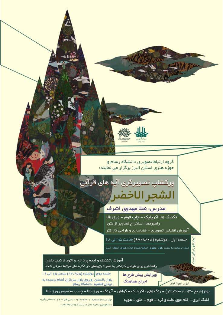 گفتنی است جلسه دوم ورکشاپ «الشجر الاخضر» برای شرکت کنندگان روز دوشنبه 5 آذر ماه در دانشگاه رسام کرج برگزار میشود.