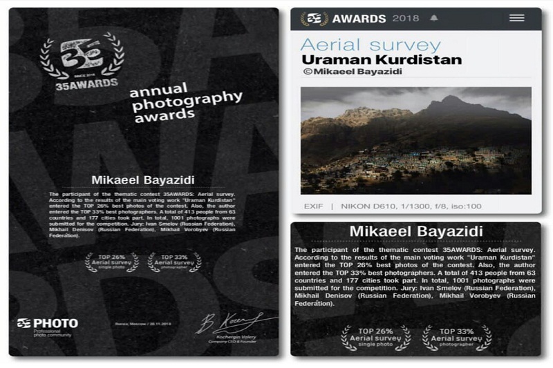 به گزارش روابط عمومی حوزه هنری استان سمنان، «میکاییل بایزیدی» از هنرمندان عکاس عضو خانه عکاسان و دفتر هنرهای تجسمی حوزه هنری استان سمنان، دیپلم افتخار بهترین عکس و بهترین عکاس سی و پنجمین مسابقه جایزه سالانه عکاسی روسیه در سال 2018، را از آن خود کرد.