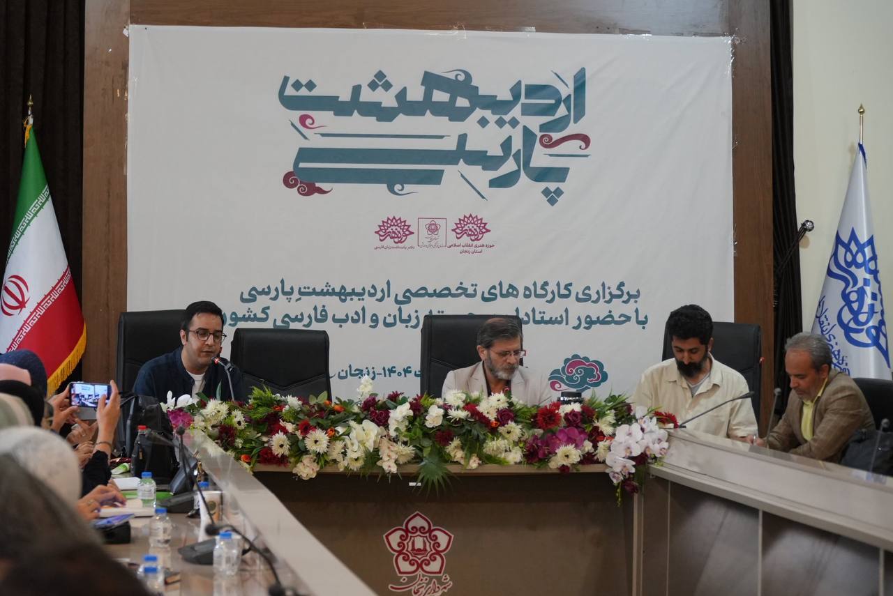 به گزارش روابط عمومی حوزه هنری زنجان، ویژهبرنامه «اردیبهشتِ پارسی» به مناسبت ۲۵ اردیبهشتماه، روز پاسداشت زبان فارسی، در روزهای ۲۴ و ۲۵ اردیبهشت ۱۴۰۴ با برگزاری چهار کارگاه تخصصی ادبی میزبان علاقهمندان به زبان و ادب فارسی در زنجان بود.