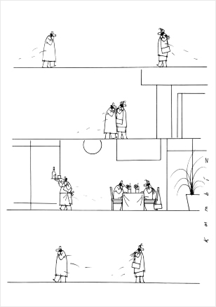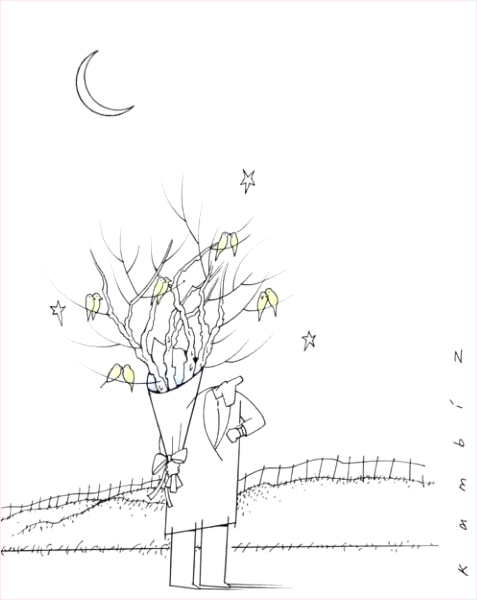 در یکی دیگر از کارها مردی را میبینیم که دسته گلی به دست دارد و در حال نگاه کردن به ساعت خود است. نکته اینجاست که دسته گل دیگر شباهتی به گل ندارد و در حال تبدیل شدن به درخت است. حتی پرندهها نیز بر روی آن نشستهاند و مرد هنوز منتظر است. در واقع این کار به وقتشناسی آدمها و روابط بین انسانها اشاره میکند.