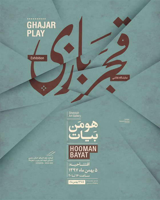 به گزارش روابط عمومی مرکز تجسمی حوزه هنری، نمایشگاه تجسمی هومن بیات با نام«قَجَربازی» در گالری شکوه برپاست. هومن بیات نمایشگاه «قَجَربازی» را با خلاقیتی نو آماده بازدید هنردوستان کردهاست. او با برگشتی خلاقانه به مکاتب نقاشی دورانهای زندیه و قاجاریه آن دو را با زیرکی هنرمندانهای درهم آمیخته و بینندگان را به تأمل و تفکر دعوت میکند.