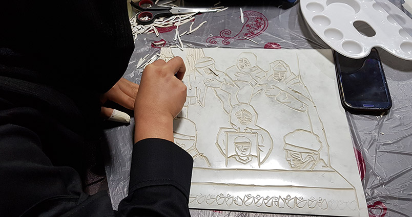 آزاده مرادی سرپرست این ورکشاپ در این باره گفت: آثاری با تکنیکهای ترافارد، تینر، لینولئوم و شیشه با موضوع انقلاب اسلامی ایران خلق شده است.