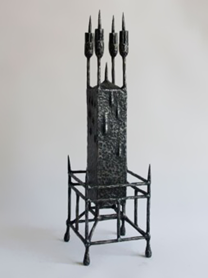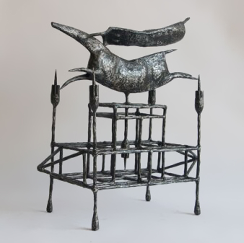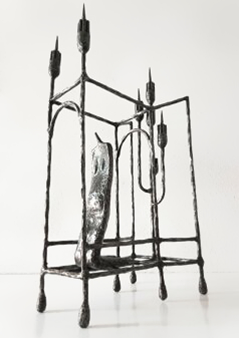 یکی از نکات جالب و مشترک در کلیه کارها این است که یک میله‌ی فلزی شاید شبیه به شمعدانی و یا مشعل در آنها دیده می‌شود. این بخش از کارها گاهی در حکم یک شمعدانی است، گاهی بخشی از تخت شیرین و یک جا بخشی از آرامگاه فرهاد است. حتی در «مرگ شیرین یک» می‌توان گفت که این فلز در خیال شیرین همانند یک آلت قتاله برای مرگ او عمل می‌کند. ولی در «مرگ شیرین دو» که گویی شیرین برای همیشه آرمیده است این میله تنها در پایین تخت شیرین قابل رؤیت است. هنرمند درباره این امر می‌گوید: «این ویژگی از دل ساخت آثار درآمده و هدف خاصی از این کار نداشته‌ام. درواقع الگوی خاصی برای این کار نداشته‌ام.»