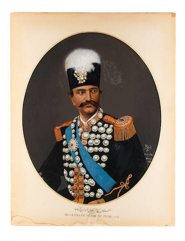 نقاشی پرتره بیضی از ناصرالدین شاه توسط محمد حسین شیرازی