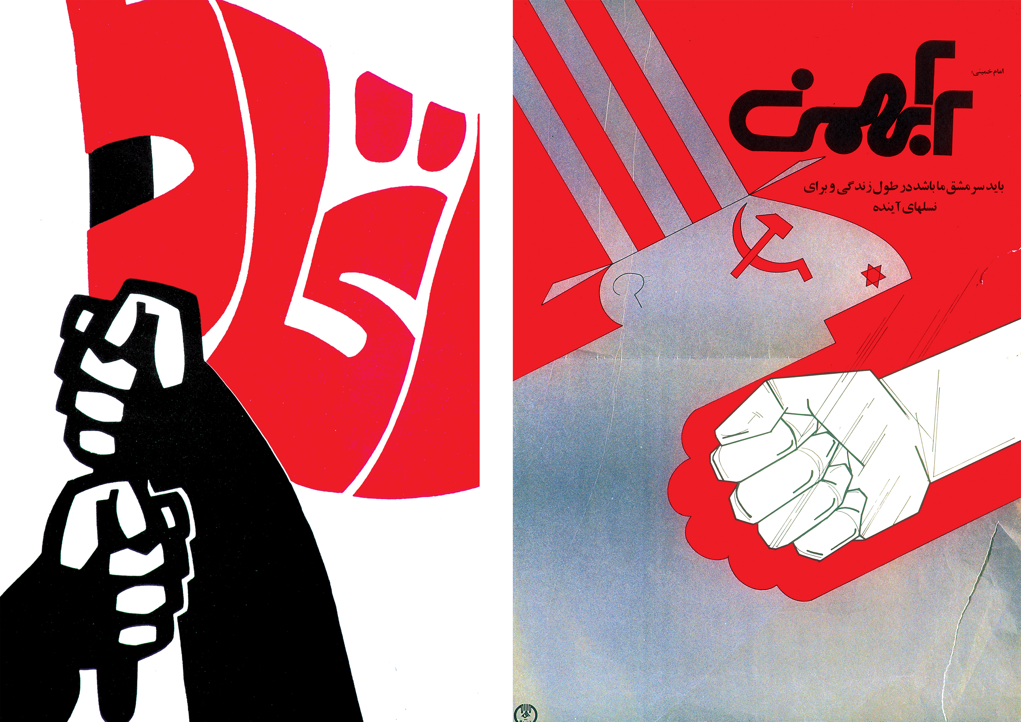 سمبلهای به کار گرفته شده که از آنها یاد شد، تقریبا نشانههای شناخته شدهای بودند که میتوان آنها را در آثار هنرمندان دیگر ملل نیز یافت و به هیچ گروه و دسته خاصی تعلق ندارند. در مقابل سمبلها و نشانههایی نیز وجود داشتند که شکل آنها برای مردم و فرهنگ کشور ما بیگانه بود. علت استفاده کم و بیش این نوع سمبلها نیز به کارگیری مکرر آنها توسط گروههای سیاسی در ابتدای انقلاب در کنار اعلامیهها و پوسترهای خاص این گروهها بود که ایدئولوژی خاصی را نشان میداد. از جمله این سمبلها، ستاره، دستان گره خوره درهم و علامت v به معنای پیروزی است که از کلمه Victory گرفته شده است.