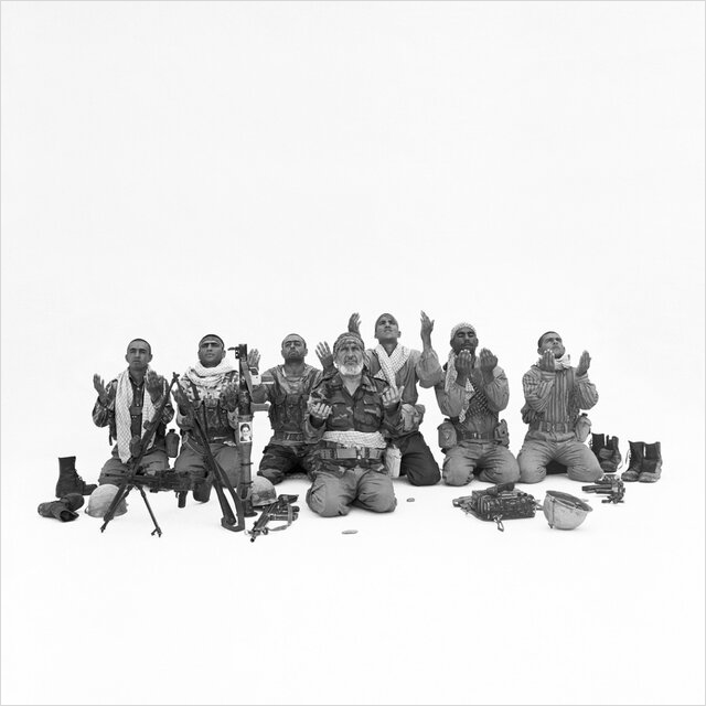 در دو عکس متعلق به محسن راستانی که کاری صحنهسازی شده هستند، رزمندگانی را میبینیم که در فضایی شبیه به برزخ قرار دارند. در یکی از عکسها سه رزمنده همراه با سلاحهای خود ژست گرفته و در عکس دیگر رزمندگان به روی زمین نشسته و دستهای خود را برای دعا به حال خرمشهر بالا گرفتهاند. گویی که در حال عبادت برای بهبود وضعیت این شهر با گذشت ۳۰ سال هستند. محسن راستانی اهل خرمشهر است و همیشه خود را عکاس جنگ معرفی میکند.