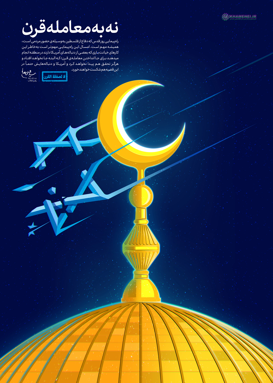 به همین مناسبت پایگاه اطلاع‌رسانی KHAMENEI.IR آخرین جمعه‌ی ماه مبارک رمضان و راه‌پیمایی روز جهانی قدس، لوح «نه به معامله قرن» را منتشر کرد.