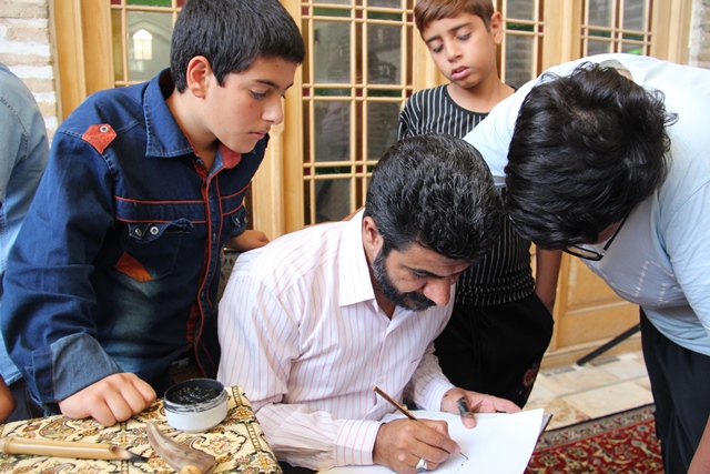 خوشنویسی هنرمندان یزدی در اعتکاف رمضانیه
