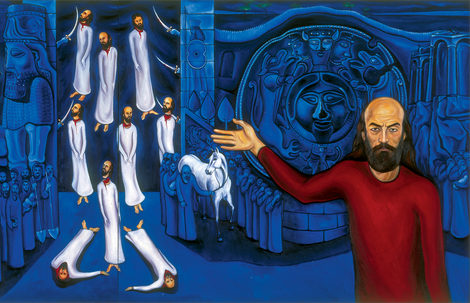 مزدک بامدادان(بخشی از اثر)، بهرام دبیری، رنگ و روغن روی بوم، 280 ×120 سانتیمتر(2لته)، 1358