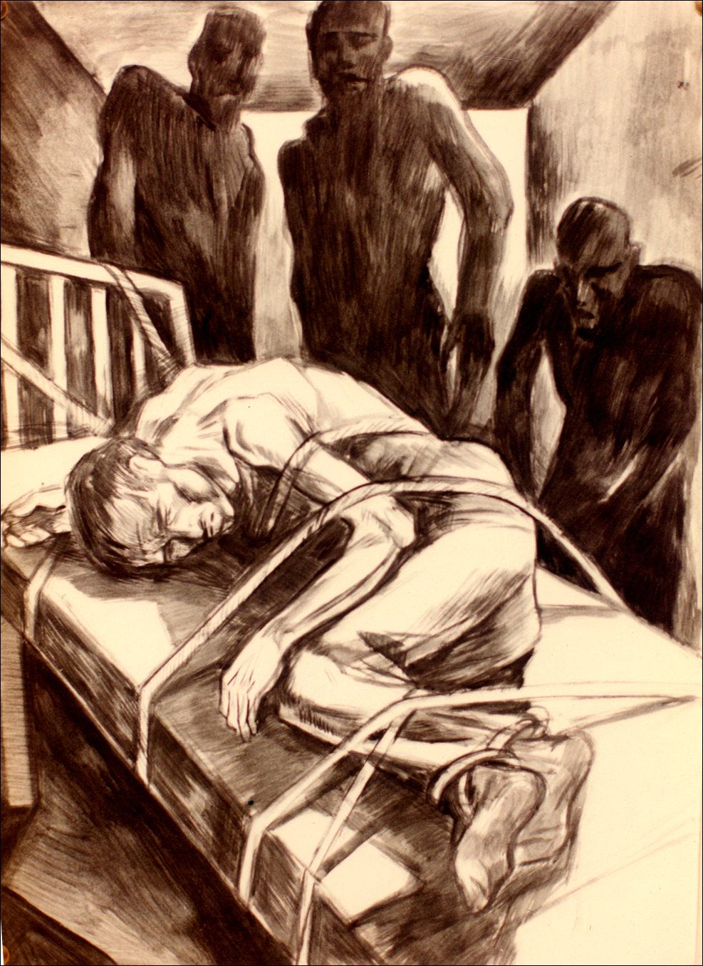 شکنجه، نیلوفر قادری نژاد، زغال روی کاغذ، 1358