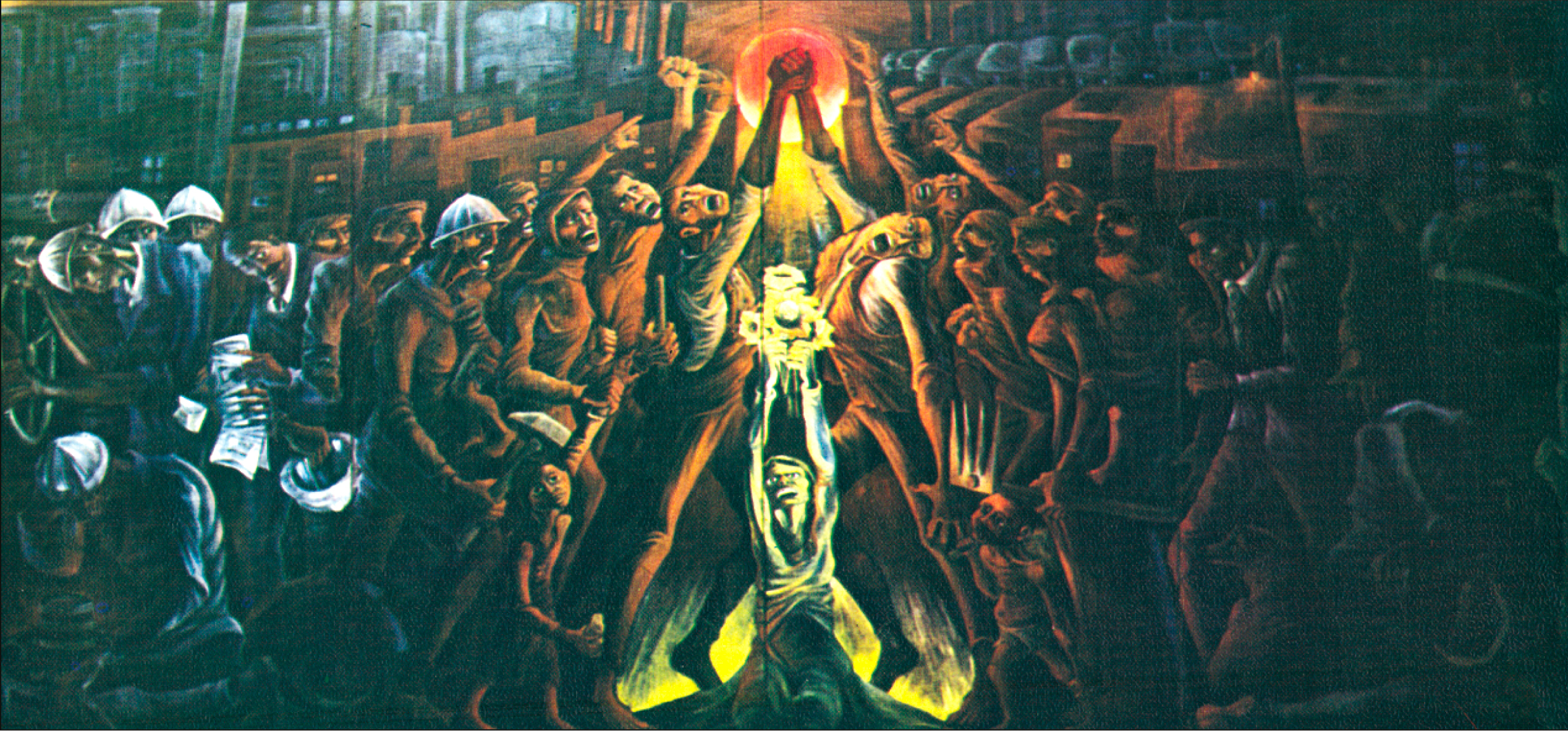 زحمتکشان اتحاد، سیروس مقدم، رنگ و روغن روی بوم، 480×270 سانتیمتر(4 لته)، 1358