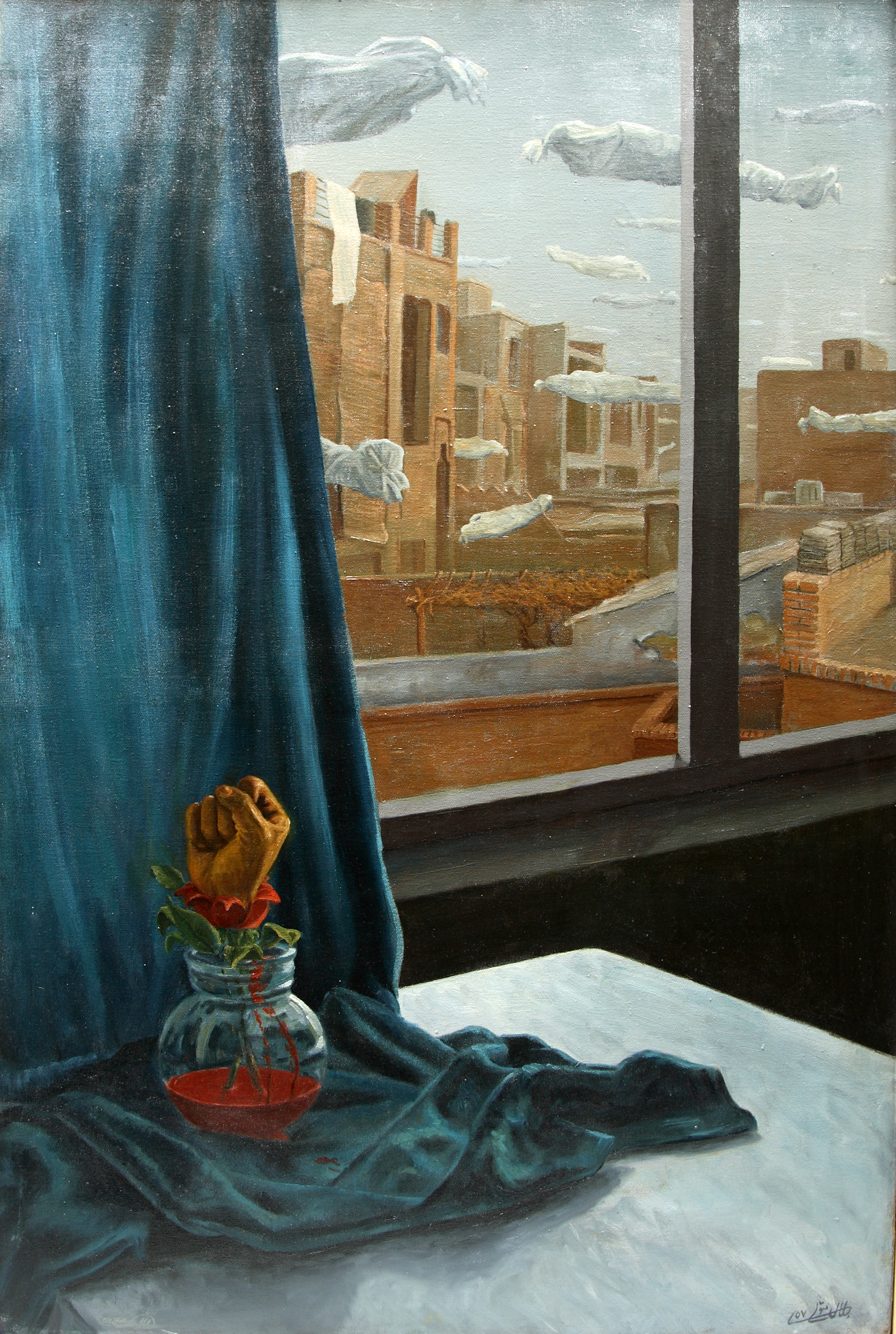 شرح شهادت، جلال متولی، رنگ و روغن روی بوم، 90×120 سانتی متر، 1357