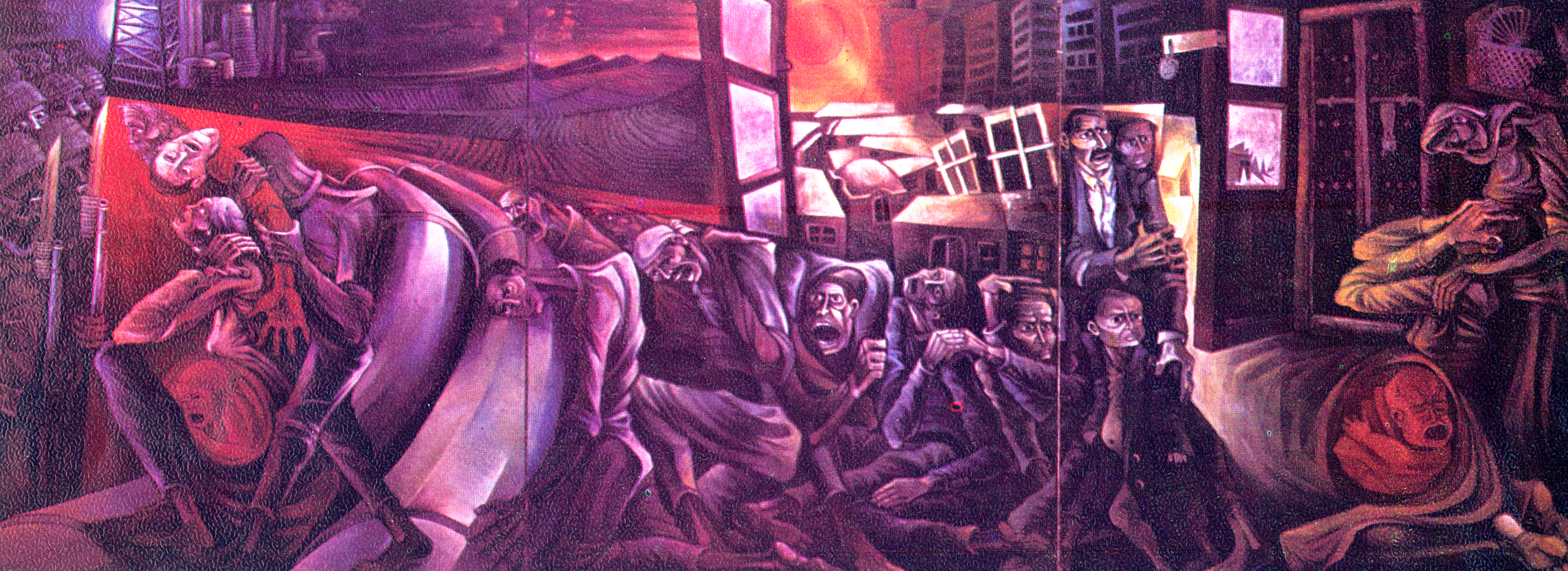 از تولد تا تولد، سیروس مقدم، رنگ و روغن روی بوم، 300×200 سانتیمتر، (3 لته)، 1357