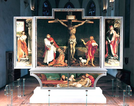 محراب آزنهایم، ماتیاس گرونهوالد، رنگ و روغن روی صفحه چوبی، 800×500سانتیمتر، 150 تا 1515، موزه اونترلیندن، فرانسه