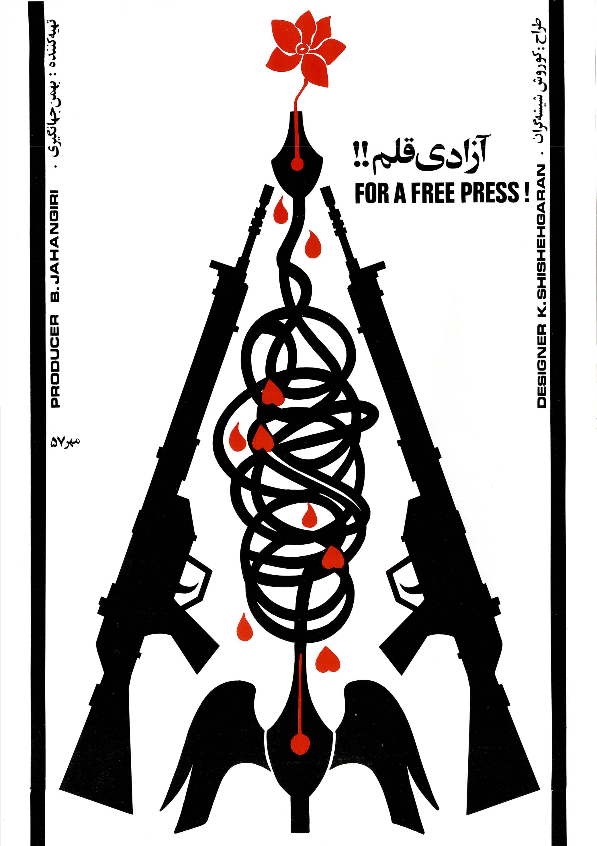 آزادی قلم، کوروش شیشهگران، چاپ سیلک، 50×70 سانتیمتر، 1357