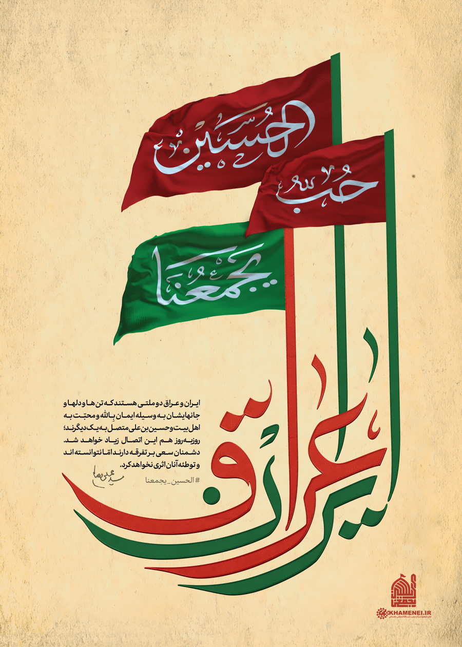 به گزارش روابط عمومی مرکز تجسمی حوزه هنری، پایگاه اطلاع رسانی مقام معظم رهبری با نزدیک شدن به ایام اربعین پوستری را طراحی و منتشر کرد که روی آن جمله «حُبُّ الحُسَین یَجمَعُنا» نقش بسته است. در این پوستر جملهای از مقام معظم رهبری قرار داده شده است که بیانگر اتحاد میان دو ملت ایران و عراق و جدایی ناپذیری این اتحاد به دلیل محبت به اهل بیت عصمت و طهارت علیهم السلام است.