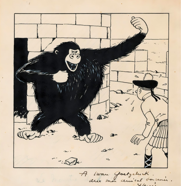 ارزش تقریبی این طراحی که شامل تصویری از یک گزارشگر جوان در لباس سنتی مردان اسکاتلندی در کنار یک گوریل میشود، بین ۲۷۰,۰۰۰ الی ۳۰۰,۰۰۰ تعیین شده بود.