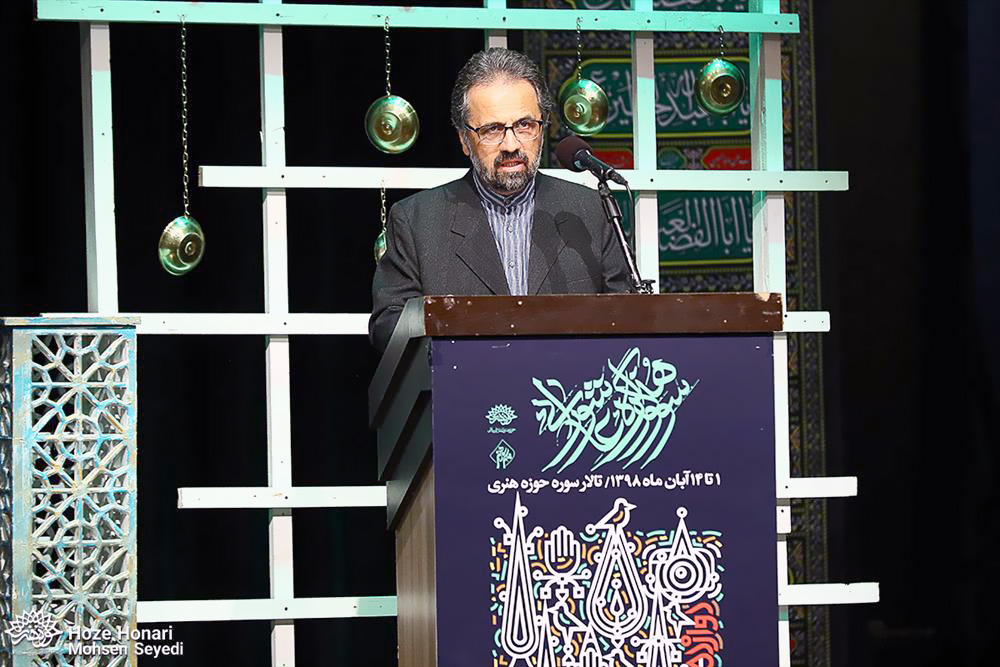بعد از آن علی وزیریان دبیر هنری دوازدهمین سوگواره هنر عاشورایی روی سن رفته و گفت: سال 83 در ماه محرم وقتی که هیاتها و تکایا هریک آذینبندی خاصی داشتند ، تصاویری از نقاشیهای مختلف که معمولا نسبت سالمی با عاشورا نداشتند، شهر را پر کرده بودند. یادم است خبرنگاری خارجی قصد تهیه گزارش از این تصاویر داشت و مغرضانه میخواست تصویری خشن از آیینهای عزاداری ما را برای مردم کشورش به نمایش بگذارد.