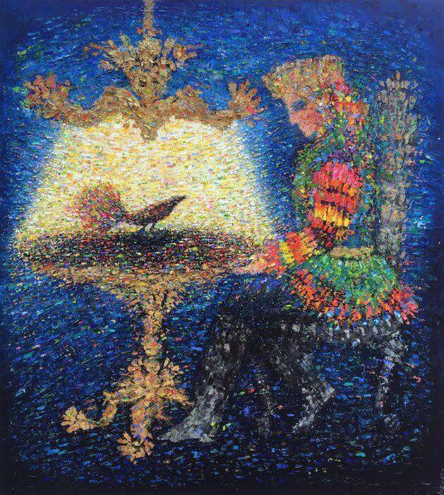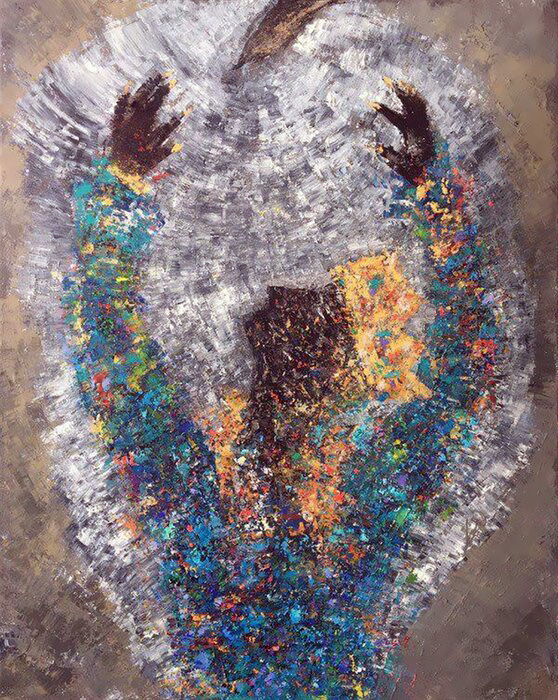 وی در این مجموعه نیز همچون دیگر آثارش به شیوه خود وفادار است و رنگها را به سبک امپرسیونیستی همچون پیکسل بر روی بوم نقاشی به کار میبرد.