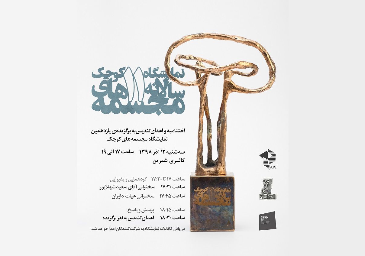 به گزارش روابط عمومی مرکز تجسمی حوزه هنری به نقل از هنر آن لاین،هومن سلیمی دبیر نمایشگاه مجسمههای کوچک گفت: نمایشگاه مجسمههای کوچک روز 13 آذرماه به کار خود پایان میدهد و در مراسم اختتامیه این رویداد سعید شهلاپور، کورش گلناری، بهداد لاهوتی و بهرنگ صمدزادگان سخن خواهند گفت.