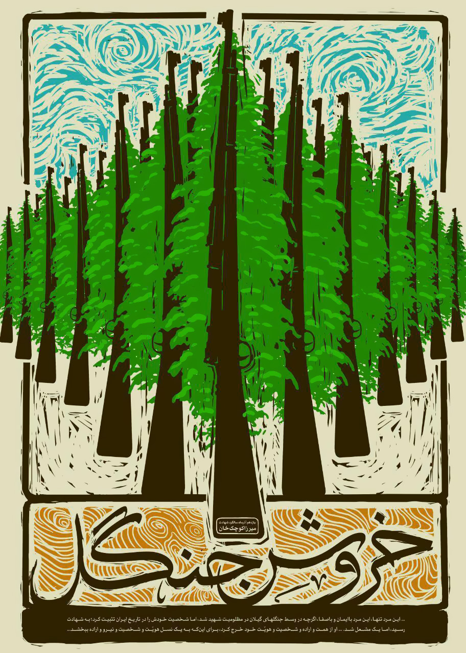 خانه طراحان انقلاب اسلامی به مناسبت سالروز شهادت میرزا کوچک‌خان جنگلی پوستر جدید خود را با نام «خروش جنگل» طراحی و منتشر کرد.