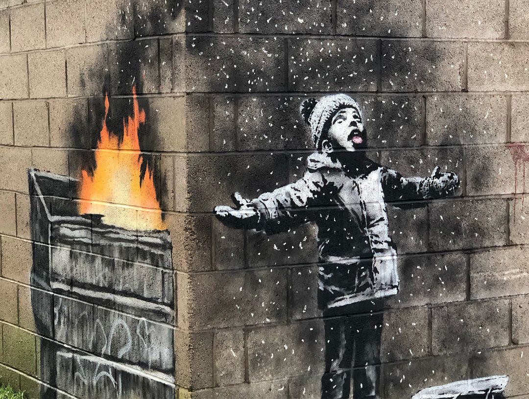 این نقاشی دیواری کودکی را به تصویر میکشد که ظاهرا برف بازی میکند در حالی که دانههای برف درحقیقت همان خاکسترهایی هستند که از آتش سطل زباله به وجود آمدهاند. گمان میرود این اثر در اعتراض به کارخانه فولادسازی است که در ماه جولای، خاکستر و غبار ناشی از آن خانهها، ماشینها و حیوانات را پوشانده بود.