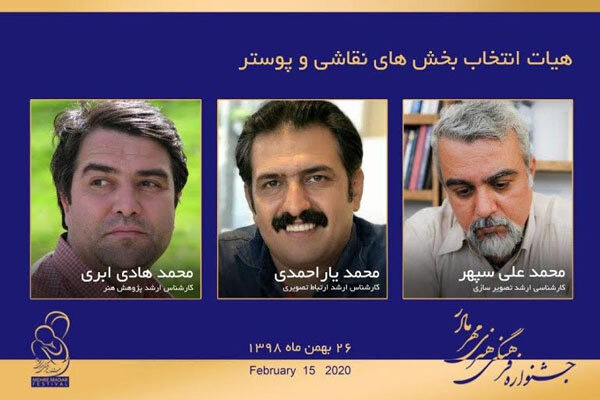 به گزارش روابط عمومی مرکز تجسمی حوزه هنری به نقل از روابط عمومی جشنواره فرهنگی و هنری «مهر مادر»، محمدعلی سپهر، محمدهادی ابری و محمد یاراحمدی هیات انتخاب بخشهای نقاشی و پوستر نخستین جشنواره فرهنگی و هنری «مهر مادر» را تشکیل میدهند.