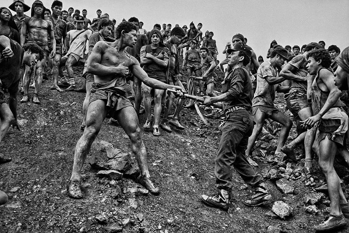 "سالگادو"، عکاس گزارشی و مستندگرا، رنج بشر و شکوه انسان را همچون یک شعر به تصویر می کشد؛ شکوهی که با تمام بدبختی ها، دست نخورده باقی مانده است. این تصویر چه می گوید؟ در معادن سِراپلادا، انبوه مردم حدود پنجاه هزار نفر در گل و لای، در جستجوی طلا، کار می کنند. یکی از کارگران، اسلحه ی ناظر را گرفته است. آن ها رو در روی هم قرار دارند. ناظر، لباس فرم به تن دارد و کارگر، ملبس به یک لنگ، با نیم تنه عریان، و پاهای برهنه ای که با حالتی تهاجمی باز شده اند. هیجان فضا را پر کرده است. چه اتفاقی خواهد افتاد؟ آیا او می تواند اسلحه را از دست ناظر گرفته و دور کند؟ کارگرِ سیاه پوست، معترض و پلیس سفیدپوست، مشکوک و نامطمئن است. وضعیت خطرناکی است. ناظر، بدون اسلحه اش کاره ای نیست. این موقعیت، شاید منجر به شورش شود.